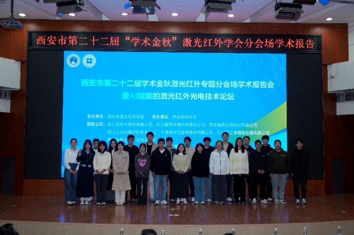 11月8日,由西安市激光红外学会主办,西安邮电大学承办的西安市第22届“学术金秋”分会场——“AI赋能的激光红外光电技术论坛”在西安邮电大学长安校区圆满落幕。本次论坛紧密围绕市科协“开放共享 学术共进”的主题,聚焦科技前沿,吸引了来自高校、科研院所及光电企业的230余名专家学者与科技工作者参会,现场学术氛围热烈,交流成果丰硕。